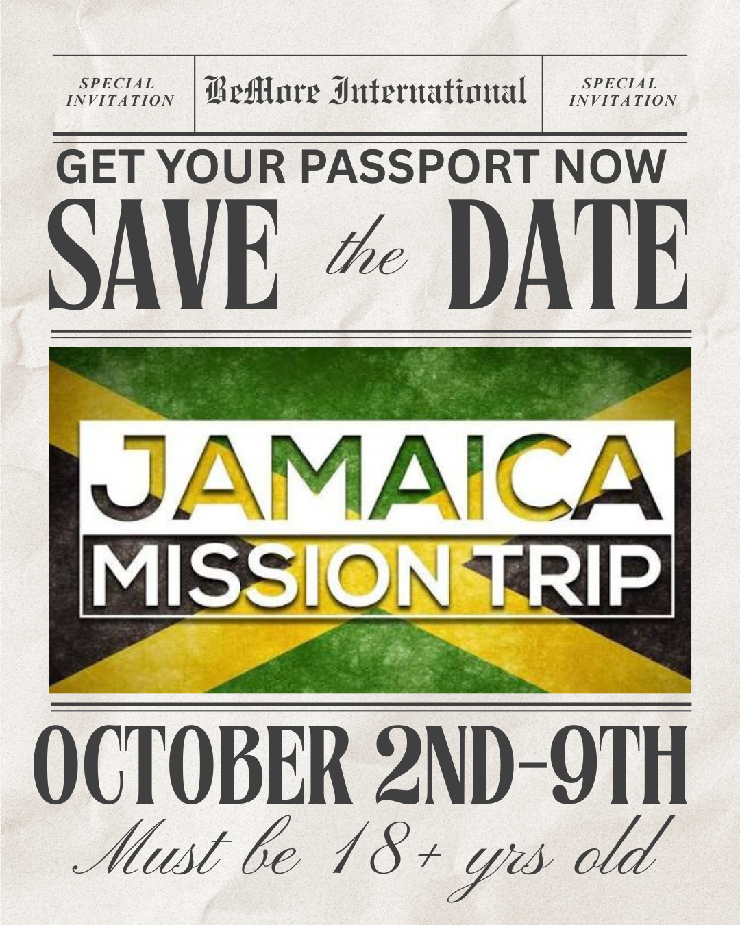 Cost Includes: Flight, Room & board, food and transporation while in Jamaica